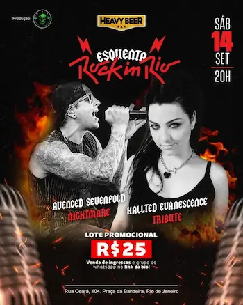 E para deixar essa noite ainda mais memorável, teremos a presença de bandas covers de Avenged Sevenfold e Evanescence, trazendo os sucessos que amamos para animar o nosso encontro.