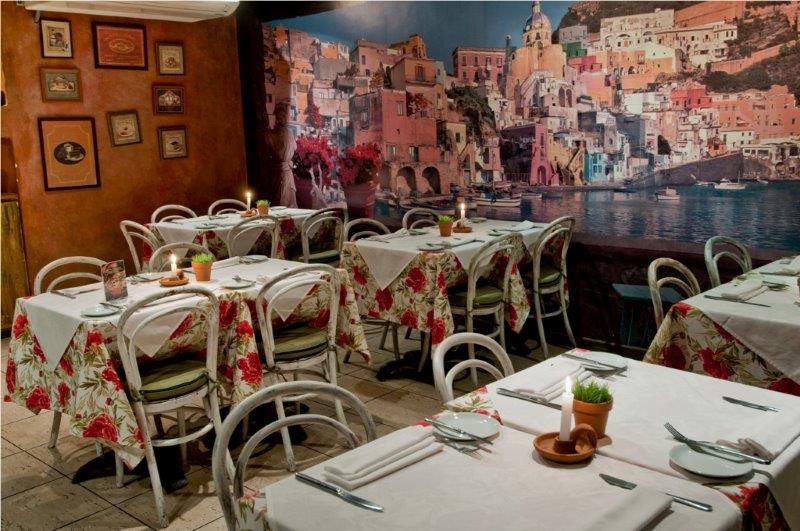 A decoração permite viajar pelos vilarejos napolitanos, através das pinturas dos pontos mais bonitos da Itália, das mesas forradas com toalhas xadrez e o menu tradicional, que representam com extrema fidelidade o reduto das famílias que não abrem mão da abundância gastronômica, sem perder a simplicidade e a originalidade. A varanda se mostra ainda, um local achochegante e romântico, que faz relembrar as noites italianas.